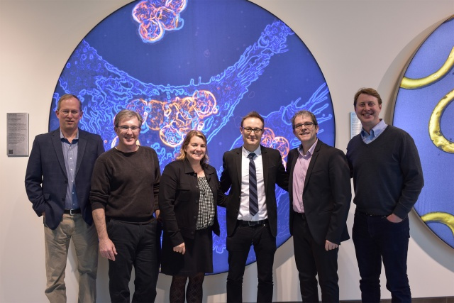 Pictured L to R: Dane Wittrup (Koch Institute), Tyler Jacks (Koch Institute), Anne Deconinck (Koch Institute), Christopher Arendt (Takeda), Jesus Gomez-Navarro (Takeda), Nicholas Ferenc (Takeda)
